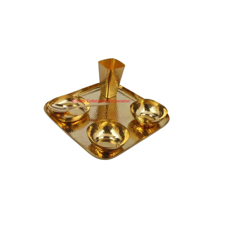 Fine Quality Copper Hammered Design Thali Dinner Set 6-Piece Dinnerware Tableware For Home Kitchen Restaurant Use