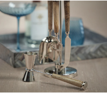 Fine Quality Stainless Steel Bar Tool Set With Handmade Ornate Handles And Hanger by Indian Factory