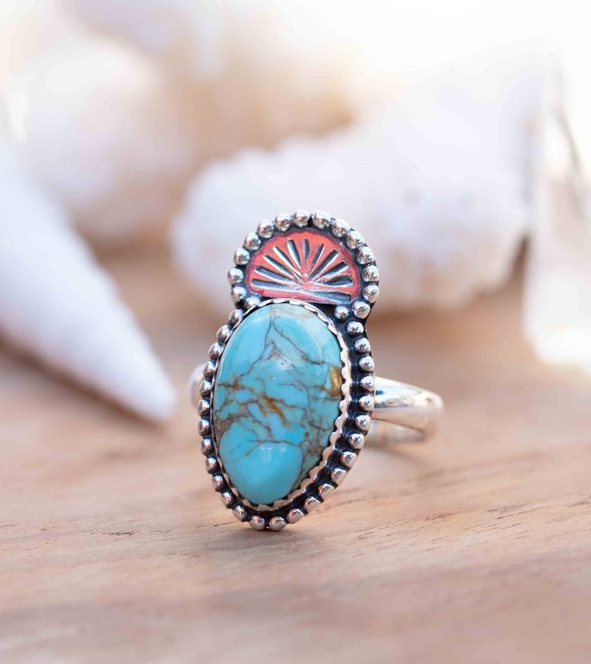 Fine Quality Unique Tibetan Turquoise Gemstone Ring 925 Solid Sterling Silver Ring Customized Natural Gemstone Oval Cut Ring