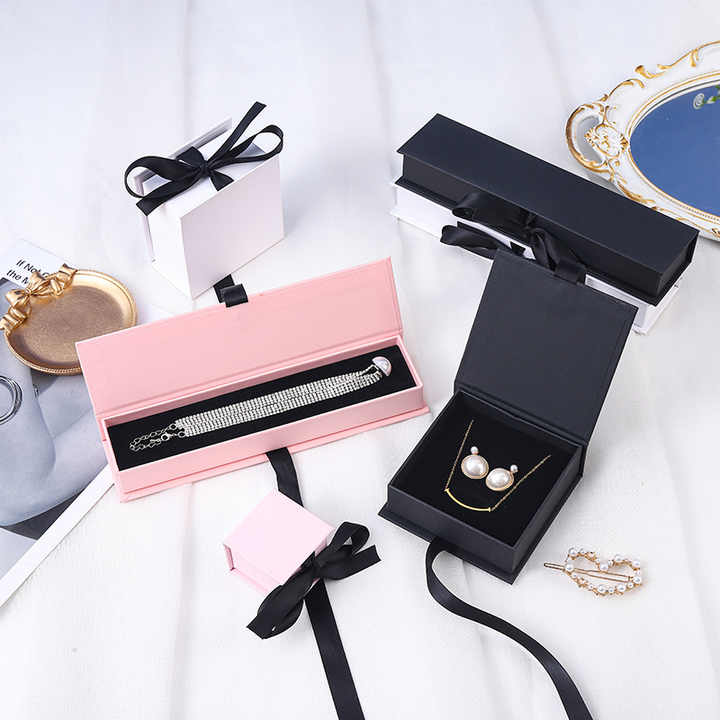 Fine Ribbon Box for Jewelry Ring Watch Necklace Earrings Pendant Gift Box with Sponge Lining Premium Paperboard Material