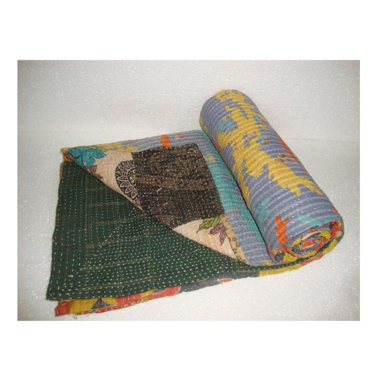 Fine Vintage Kantha Quilt Hand Stitched Cotton Quilt Bohemian Bedding Bedspread Blanket Throw