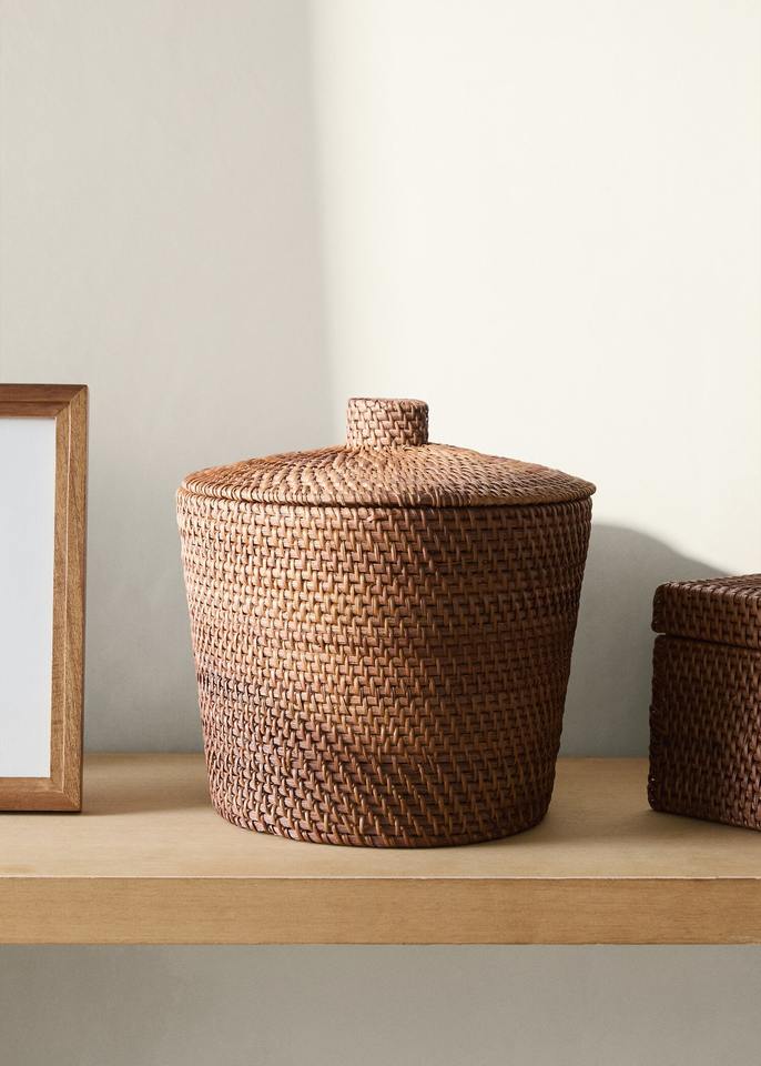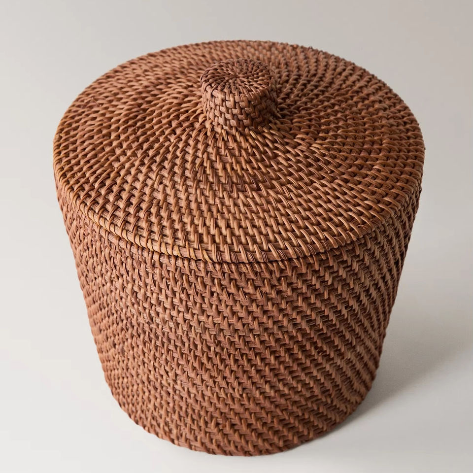 Name:Fine rattan box with lid Size: D9,8 x H10,6 inch