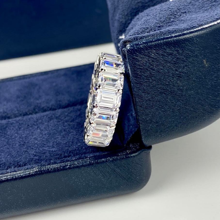 FineJewelry 3x5mm Moissanite Diamond Emerald Cut Full Eternity 14K White Gold Men Band Ring