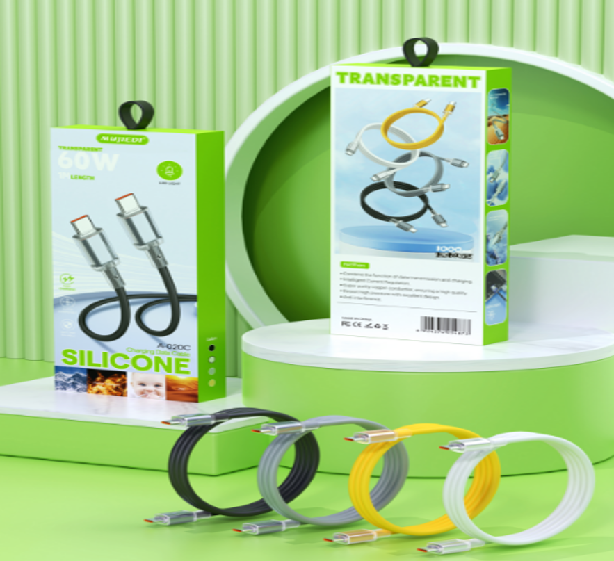 Finesse Quality 60W 1 Meter Crystal Silicone USB Type-C to Type-C 6A Fast Charging Cables
