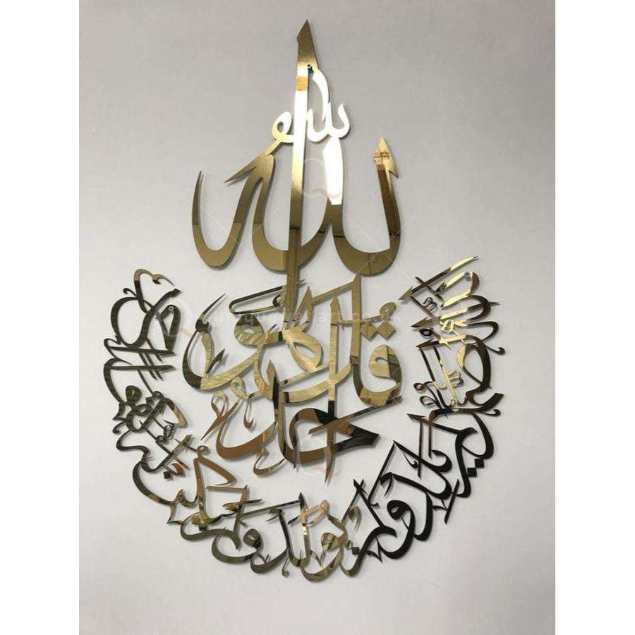 Finest Quality Islamic Calligraphic Wall Arts Stainless Steel Gold Plated Arabic Calligraphy Frame & Scenery for Eid Decoration