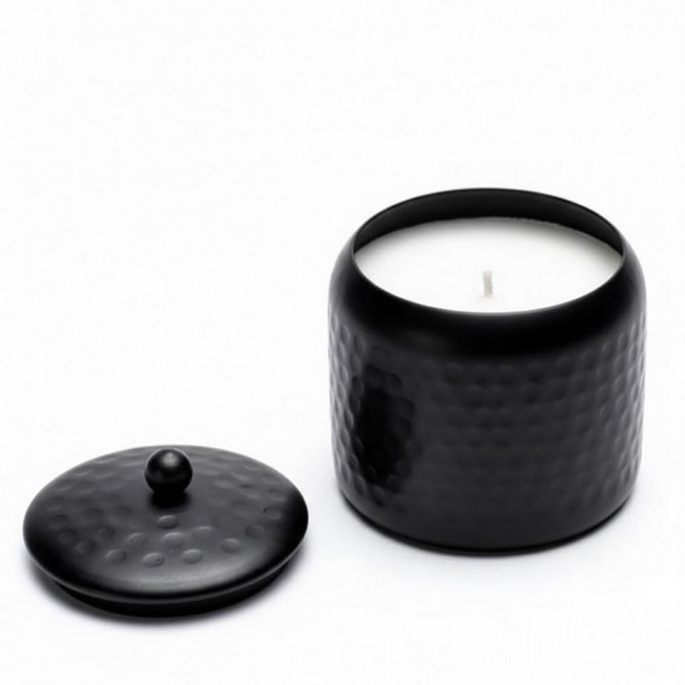 Finest Quality Matte Black And Rose Gold Metal Candle Jars With Lids Round Metal Container For Indoor Home Decor Candle Holder
