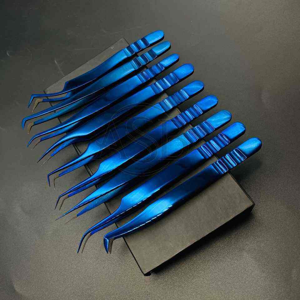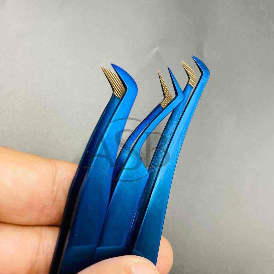 Finger Grooved Handle Blue Plasma Tweezers for False Eyelashes Cheap Wholesale Price Sustainable Steel Lash Tweezers
