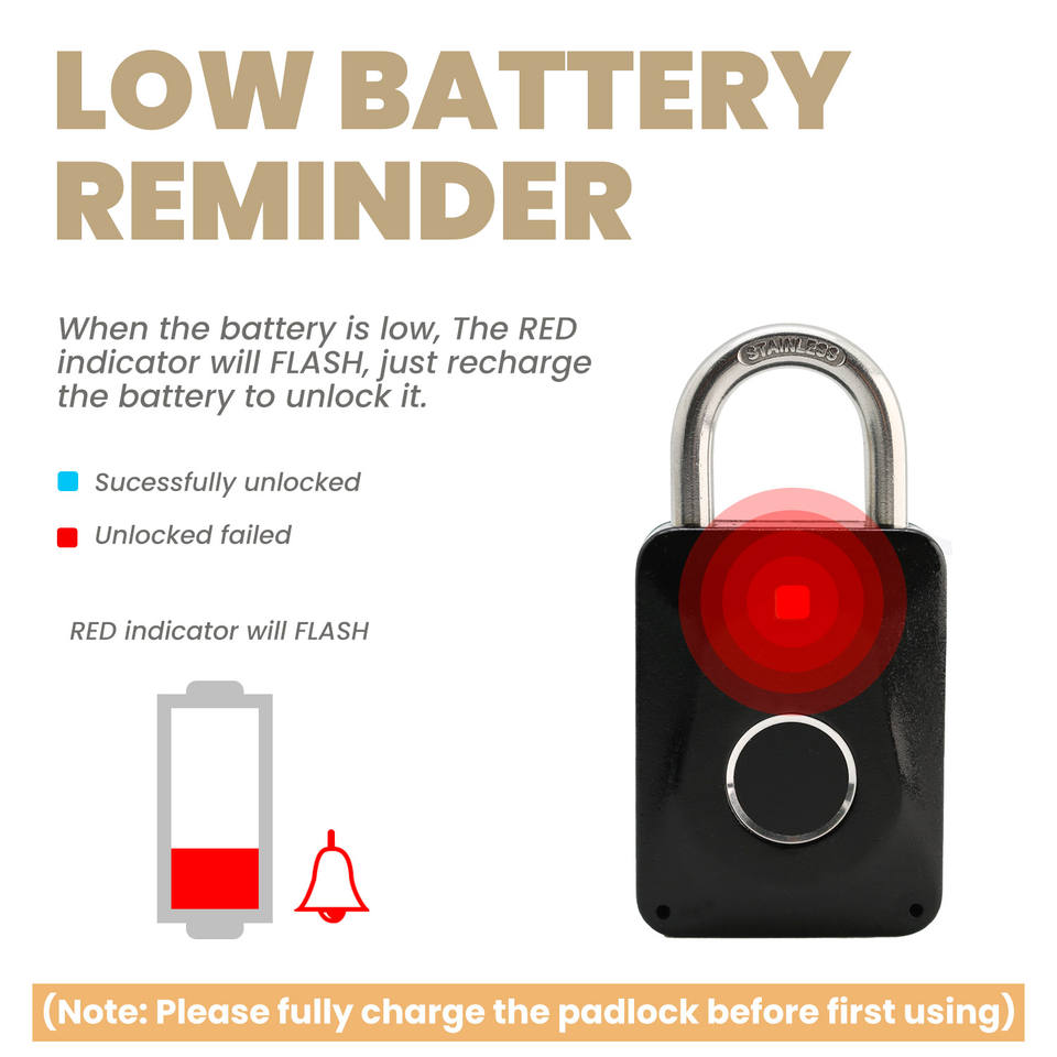 Fingerprint Smart Padlock with USB Charging Rain Proof Great for Bags Luggages Suitcases Lockers