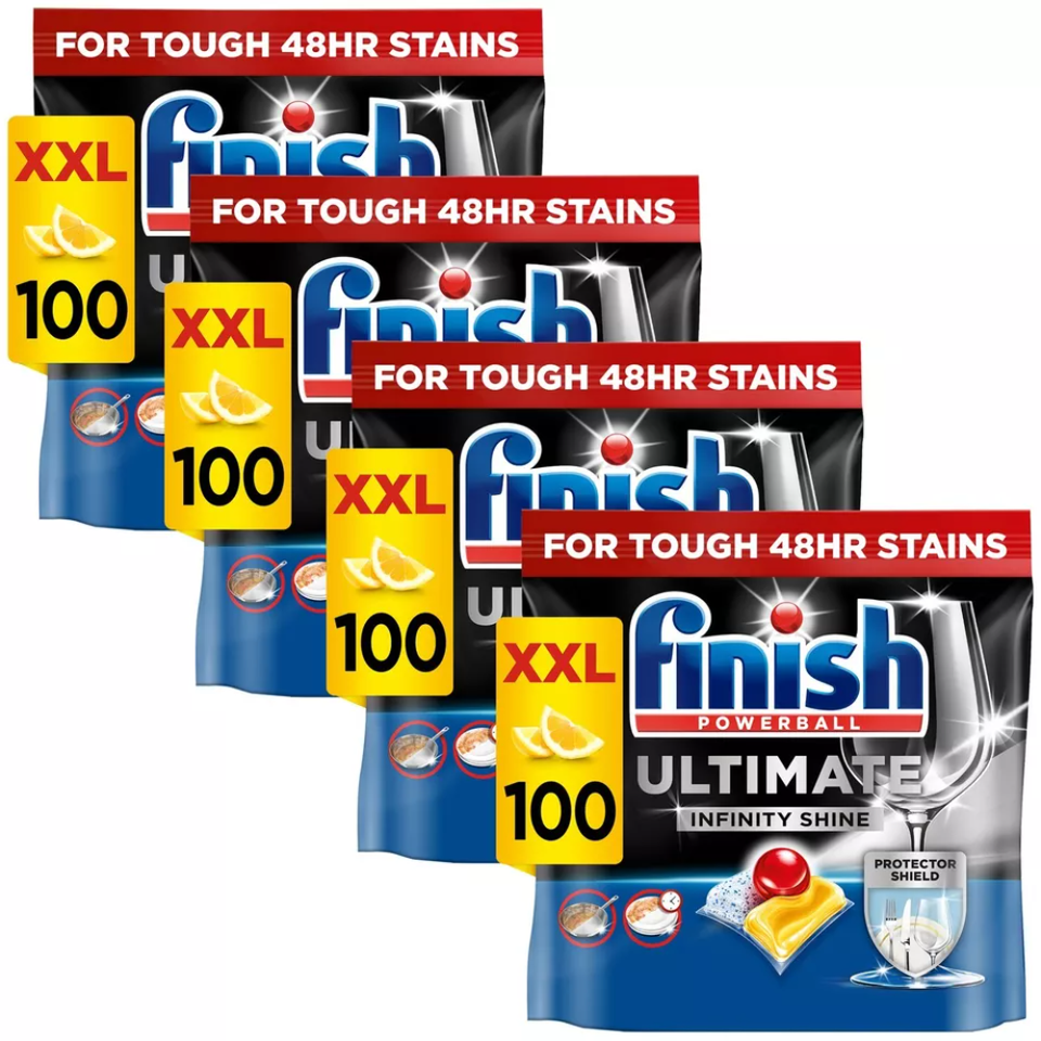 Finish Ultimate Infinity Shine Dishwasher Tablets Bulk | Scent : Lemon | Size: 100 Dishwasher Tabs |Ultimate Clean and Shine