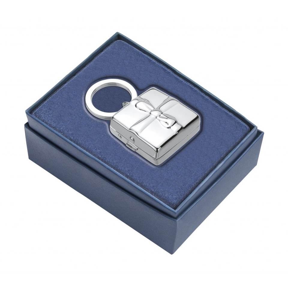 Fiori Keyring Pill Box Small Gift Box Design With Bow Silver Finish For Medication Storage On The Go