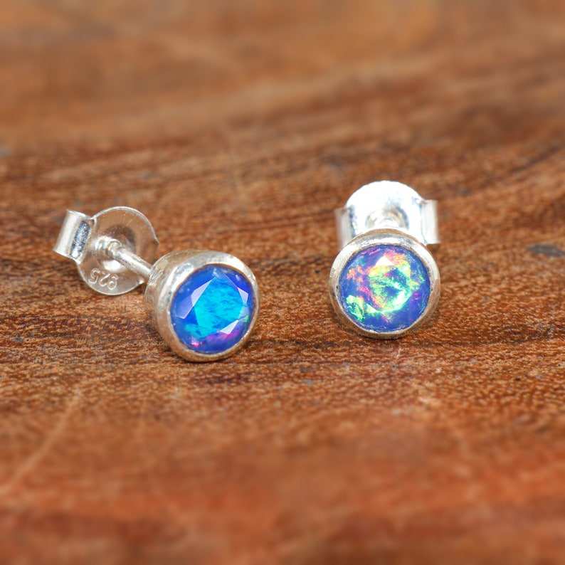 Fire Blue Opal Natural Opal Sterling Silver Gold Plated Stud Earrings for Women October Birthstone IGI Certified Party Jewelry