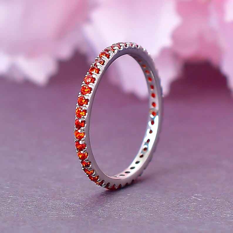 Fire Opal Eternity Band Sterling Silver Wedding Ring Elegant Gemstone Jewelry Stackable Ring For Women