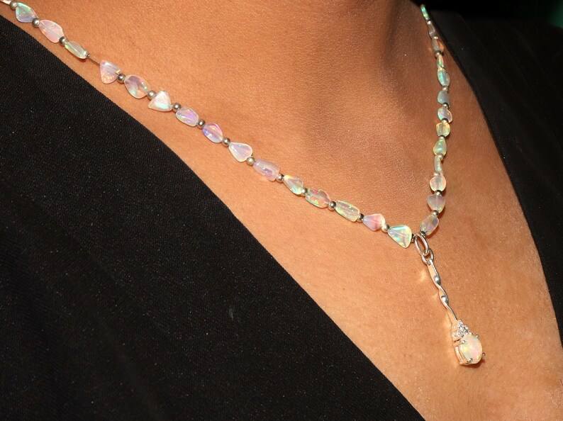 Product name:Fire Opal Pendant Necklace with White Opal Tumble Beads