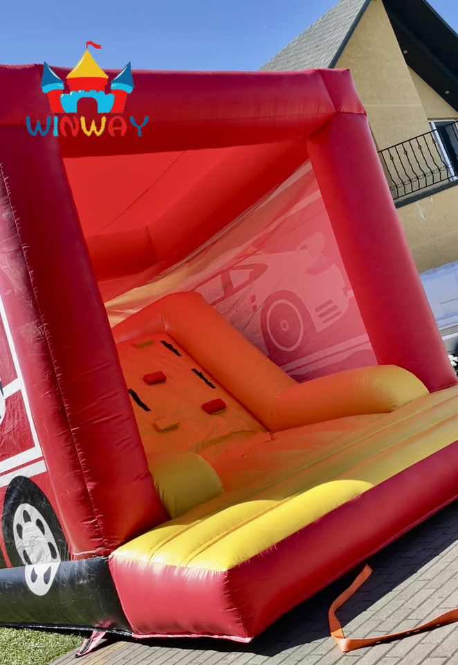 Fire Truck Themed Inflatable Bounce House Slide for Kids' Birthday Parties & Carnival Events