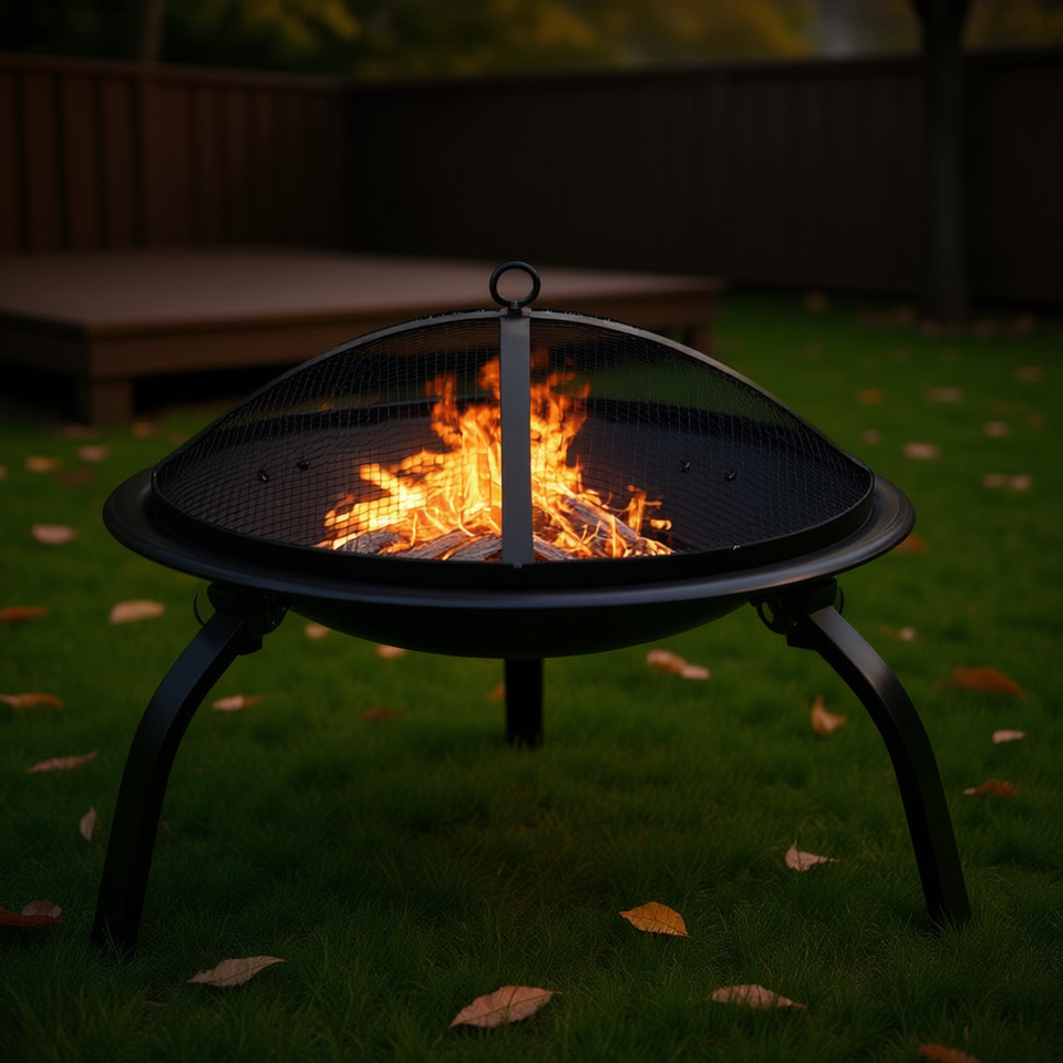 Firefly Steel Fire Pit 22 In Outdoor Wood Burning Grill With Poker Portable Freestanding Fire Feature