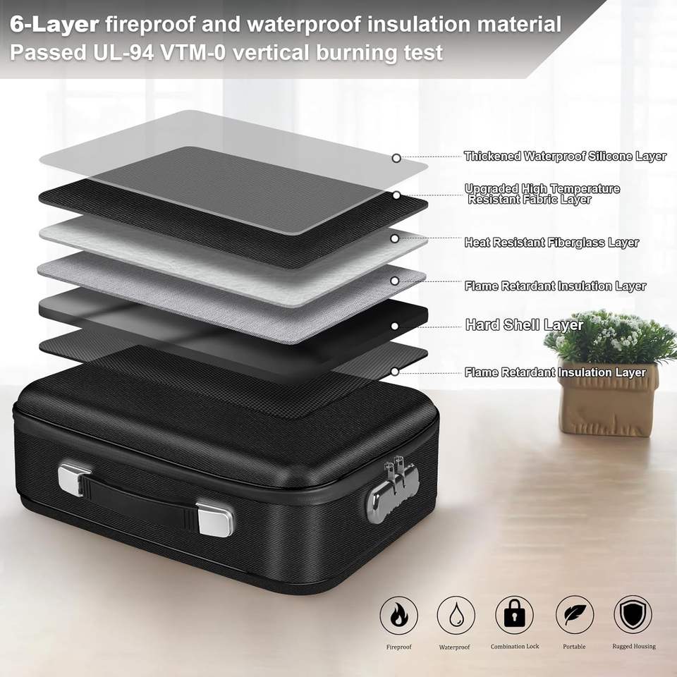 In the Trend Fireproof Waterproof Pu Material Hard File Box Bag with Lock for Documents and Certificates