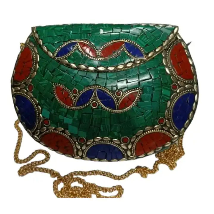 Firoja Mosaic Work Women Purses Evening Metal Clutch Designers Envelope Bags Sling Shoulder Fashion Indian Vintage BG-041223K