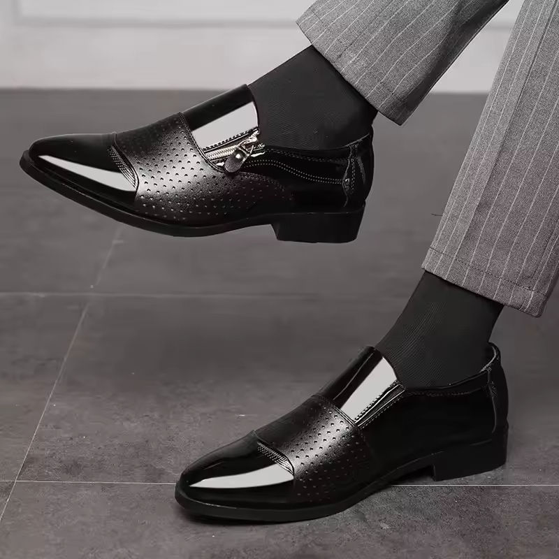 First Layer High-Grade Glossy Fabric Mesh Autumn Business Casual Round Toe British Formal Oxford Thick Sole Men's Retro Shoes