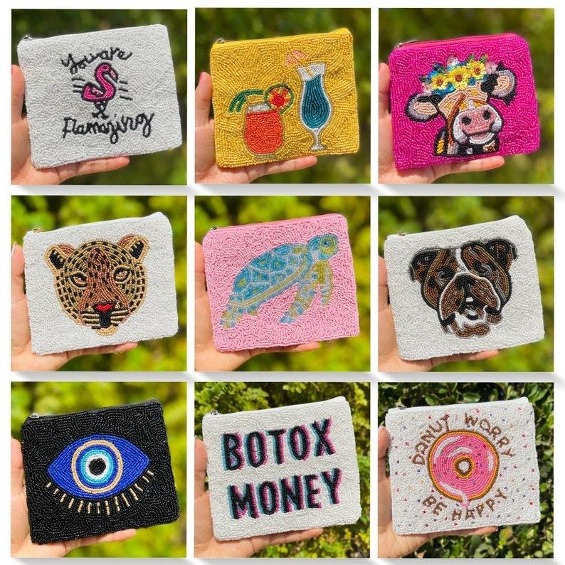 Fish Design Fully Hand Beaded Vintage Style Girls Key Pattern Cotton Rattan Coin Purse Soft Large Travel Magnetic Storage Bag