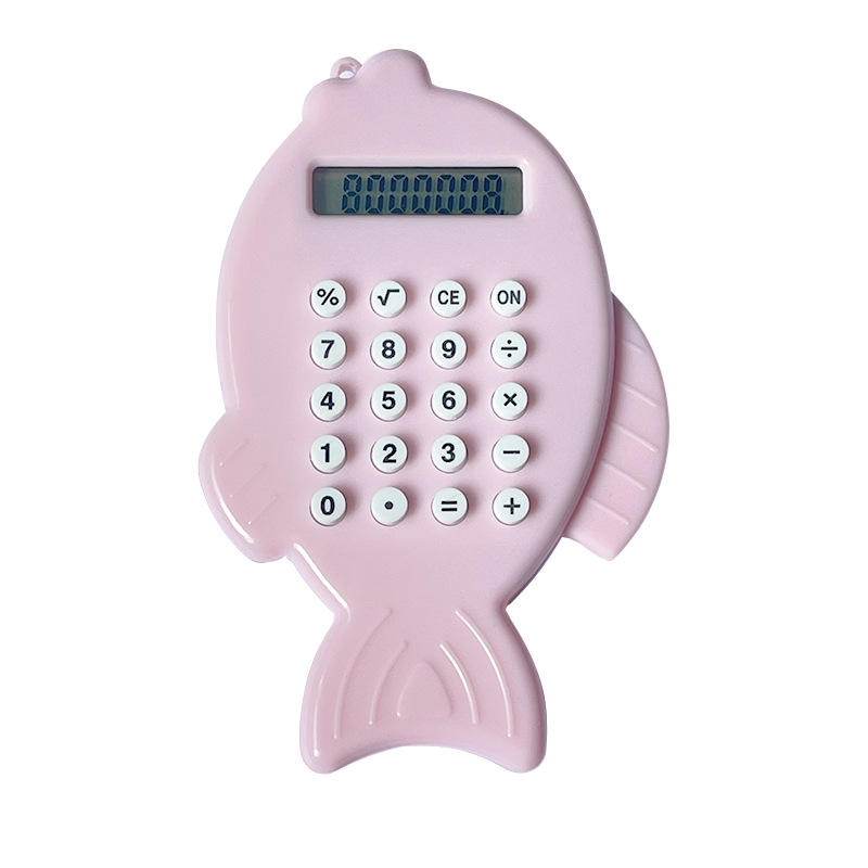 Fish Shape Mini Pocket Plastic Dual Power Pink Customizable Color Bulk Kids Cute Battery Calculator