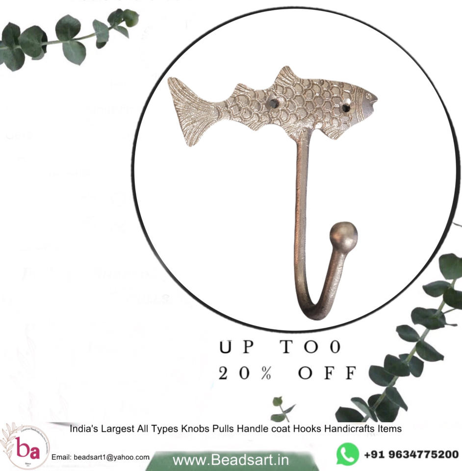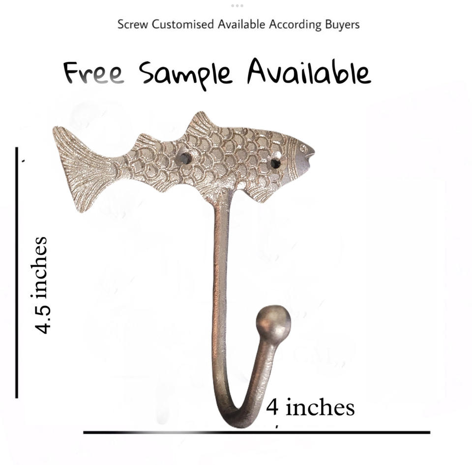 Fish Silver Cast Iron Coat Hooks Keychain Hanger Eco-Friendly Wall Mounted Clothing Organizer