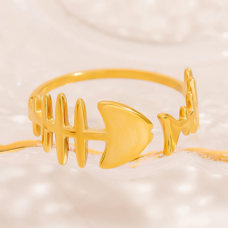Fishbone Open Ring 18K Gold Color Women's Jewelry Gift Geometric Design Skeleton Shape