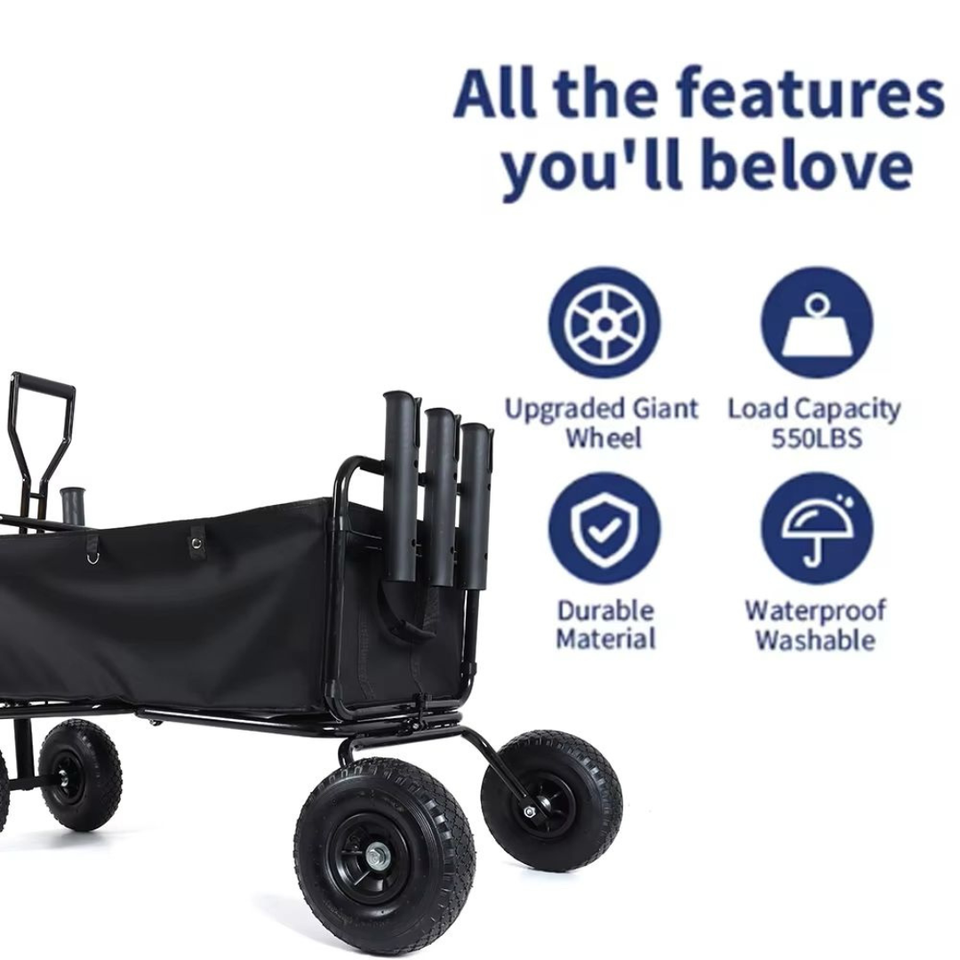 Fishing Cart Beach Carts Heavy Duty Foldable Collapsible Wagon with Big Wheels