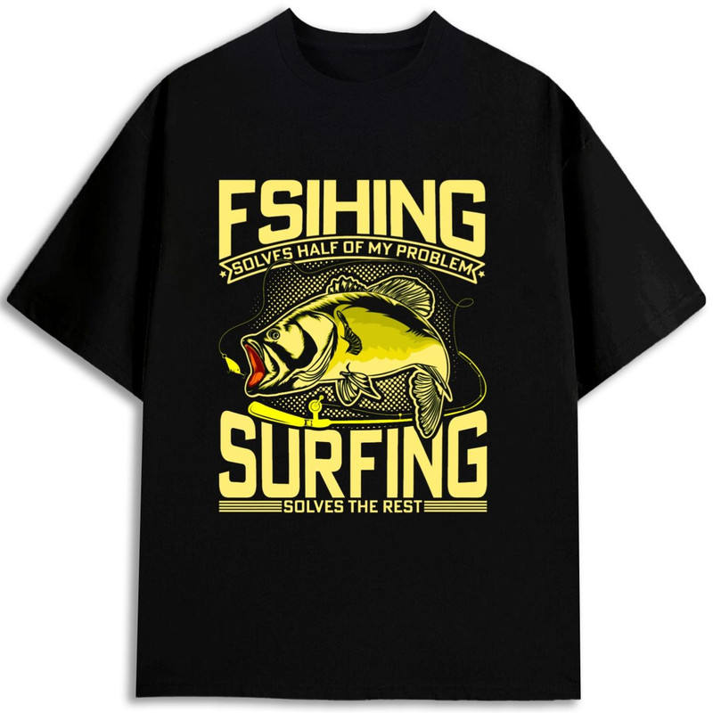 Fishing Surfing T-Shirt Men 100% Cotton 180Gsm Short Sleeve Printed Design Eco-Friendly Regular Fit Jersey Shirt