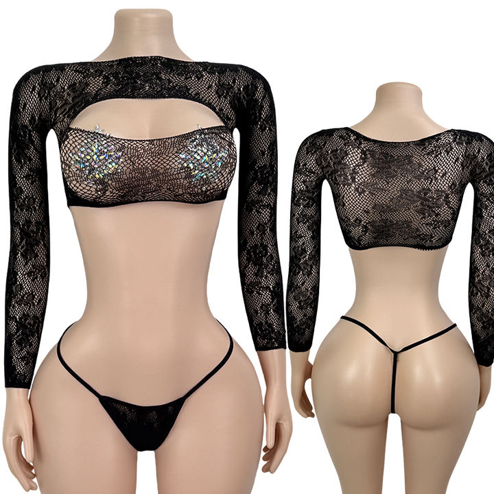 Fishnet Cut out Top and Matching Thong Set Pole Club Outfits for Women Sexy Swimsuits Sexy Stripper Outfit Exotic Dancewear