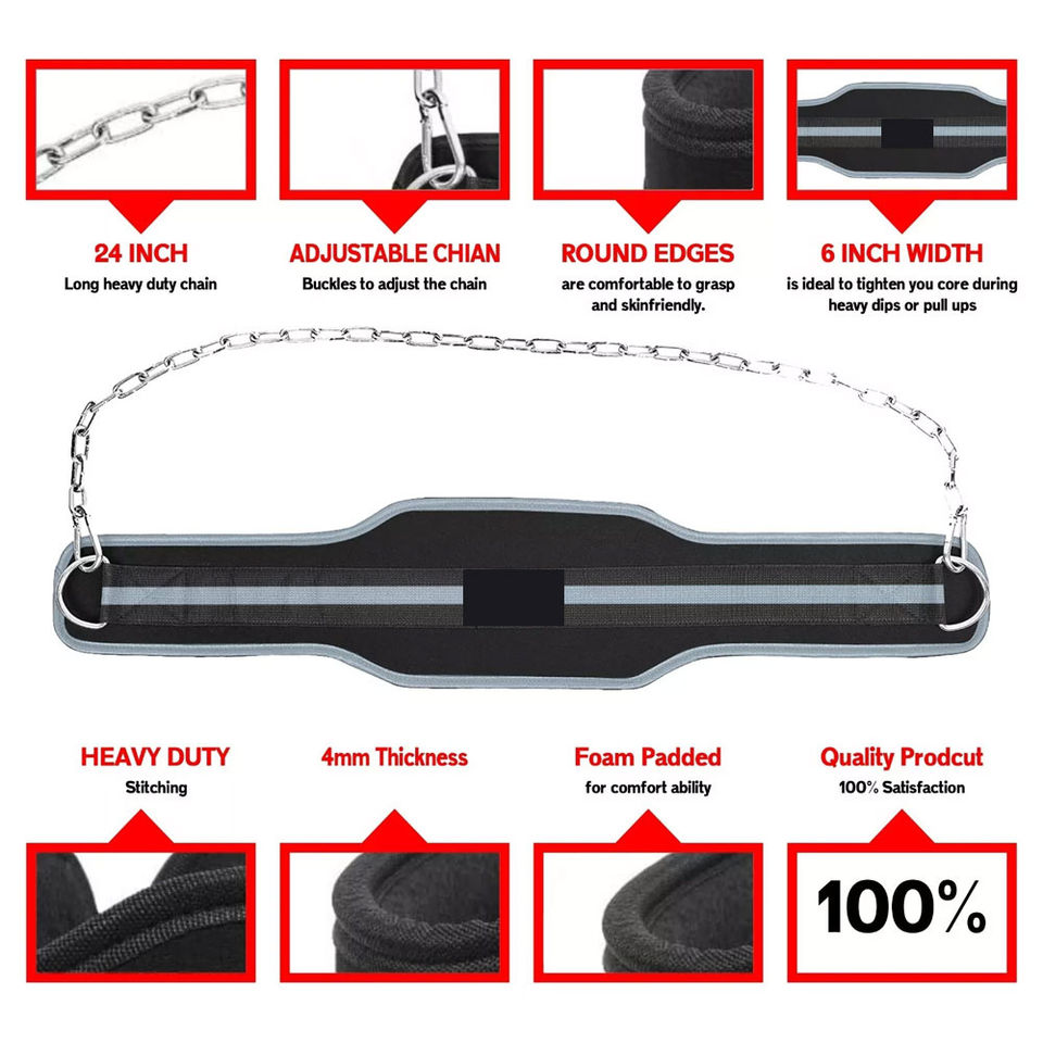 Fitness Dip Weightlifting Belt With Metal Chain Custom Branding For Dips Pullups Strength Workout Support Customizable Design