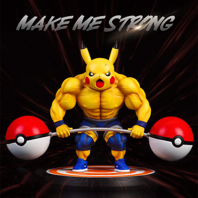 Fitness Muscle Pikachu Charmander Squirtle Pokemoned Anime Action Figure Bodybuilding Series Pvc Figure Gk Statue Figurine