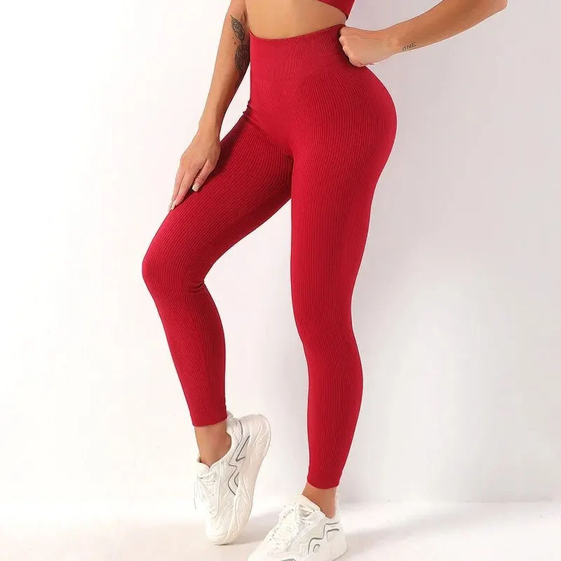 Fitness Women Sport Seamless High Waist Elastic Solid Yoga Leggings Breathable Eco-Friendly Gym Jogging Quick Dry Push Slim