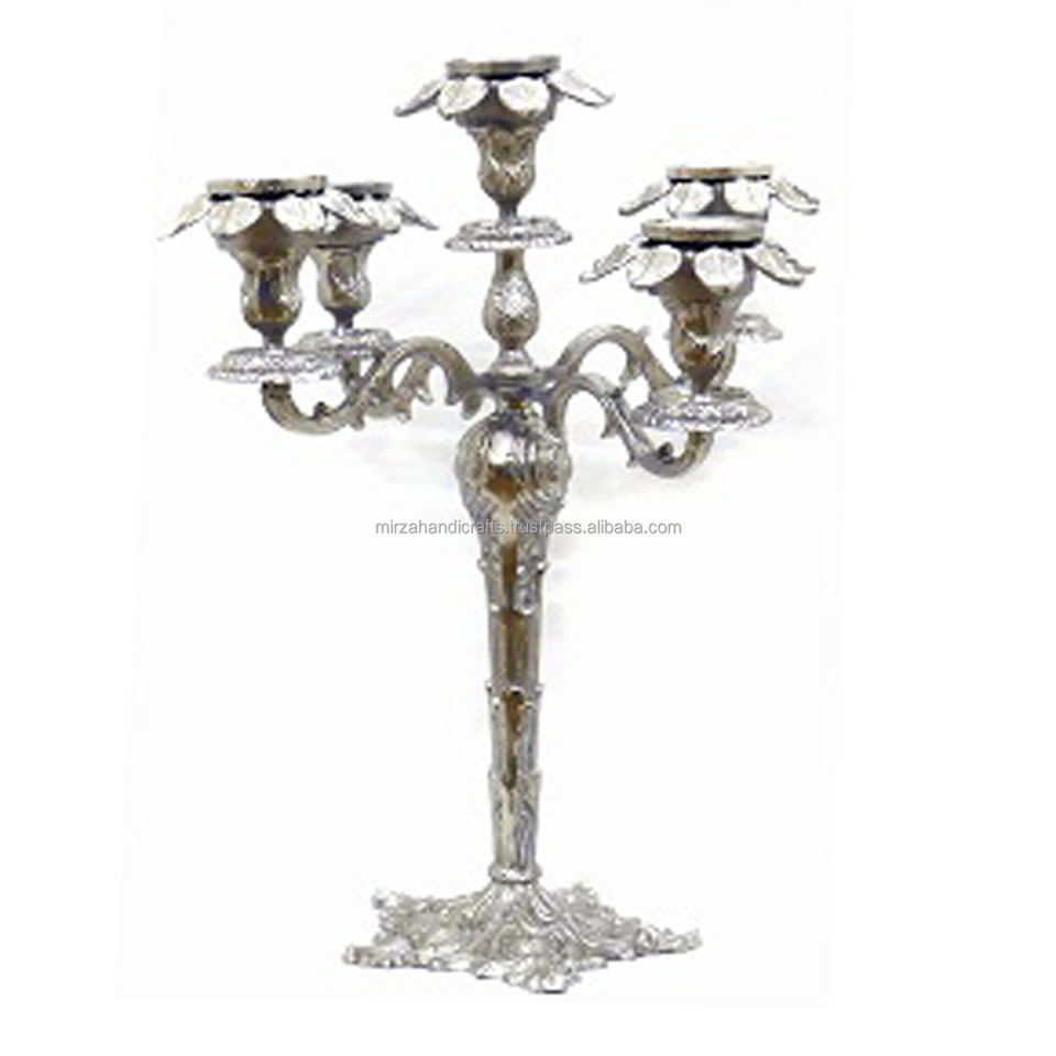 Five Arms Silver Plated Handmade Decorative Candelabra Candle Holder for Home Decorative Wedding and Party Decoration