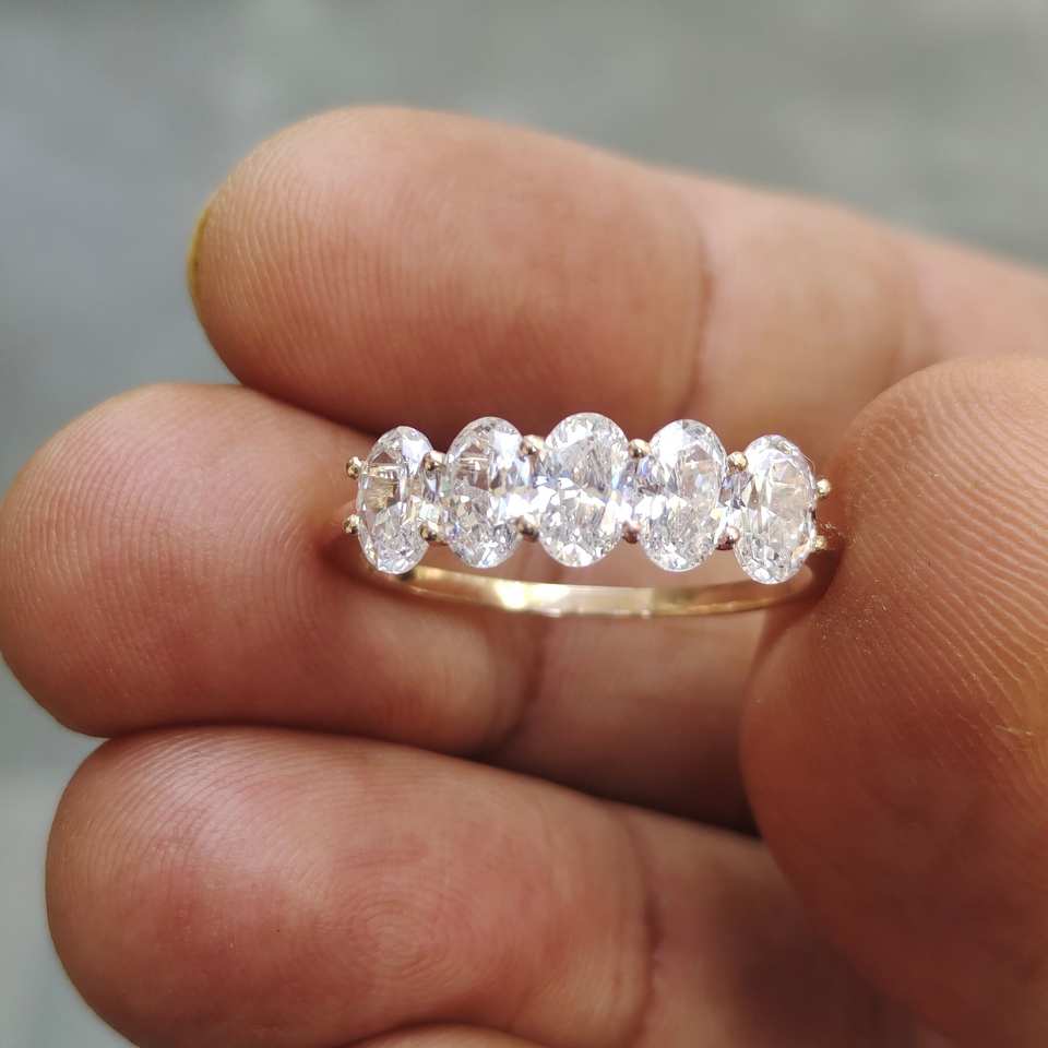 Five Band Half Eternity Oval Cut Lab Grown Diamond Ring 14K Solid Gold Wedding Band For Engagement Jewelry For Bride Partner
