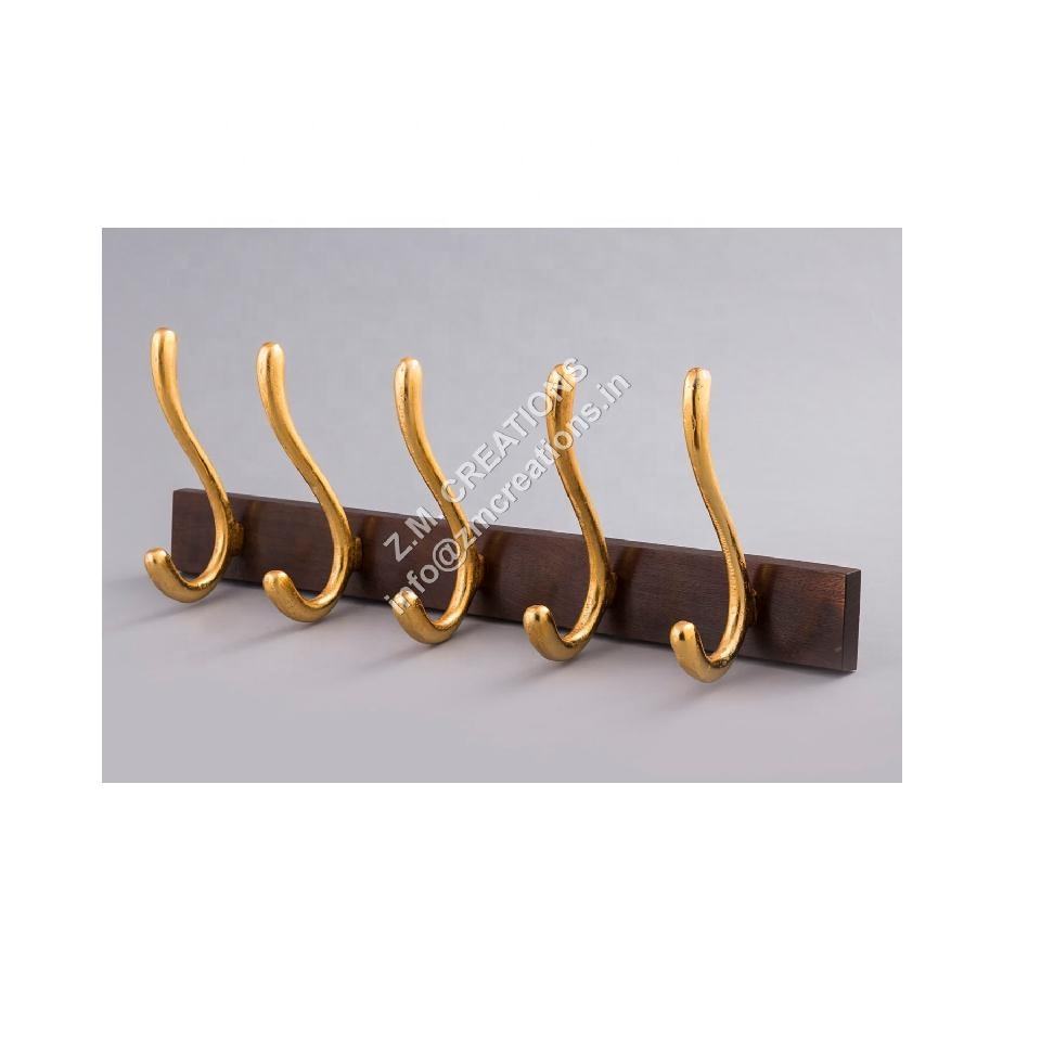 Five-Cast Decorative Metal and Wood Wall Hook for Coat Robe Bag Wall And Door Mounted Clothing Hanger