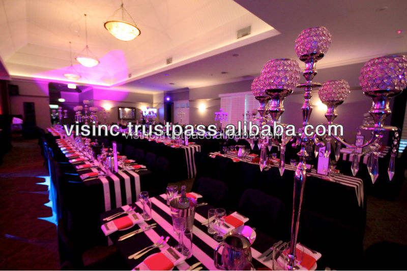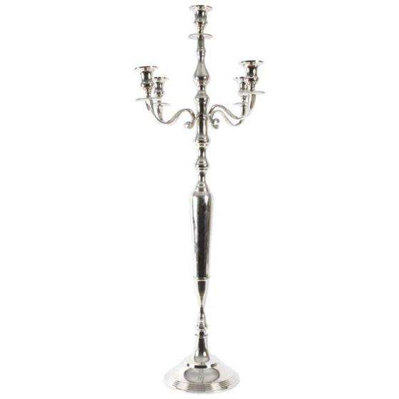 Five-Light Silver Crystal Taper Handmade Aluminum Metal Candelabra Elegant Wedding Decor with Lanterns & Ornaments OMKAAR