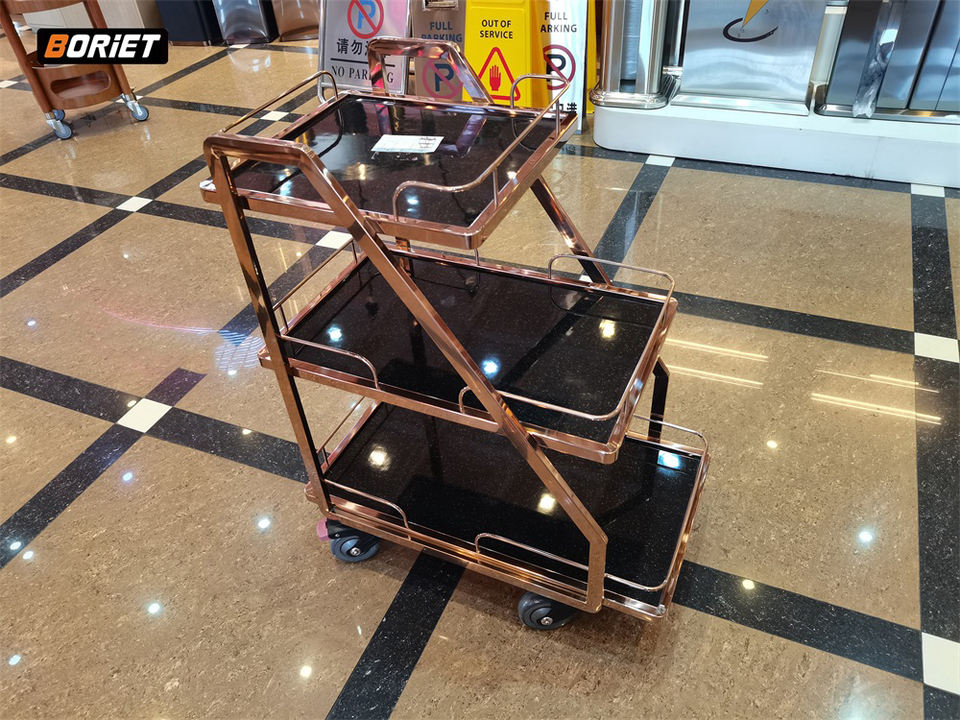 Five star hotel Metal Handcart Metal Dining Cart Party Wedding Dining Liquor Trolley Beverage Cart