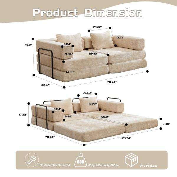Fixed Shape Compression Sofa Convertible Floor Loveseat with Boneless Modular Sectional No Assembly Required