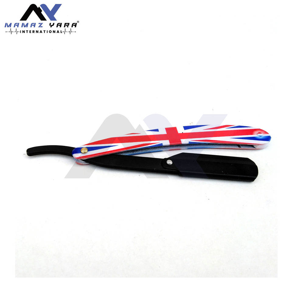 Flag Printed Handle Barber Razors Black Swing Lock Stainless Steel Barber Shaving Razors Custom Flag Cut Throat Patriotic Razor