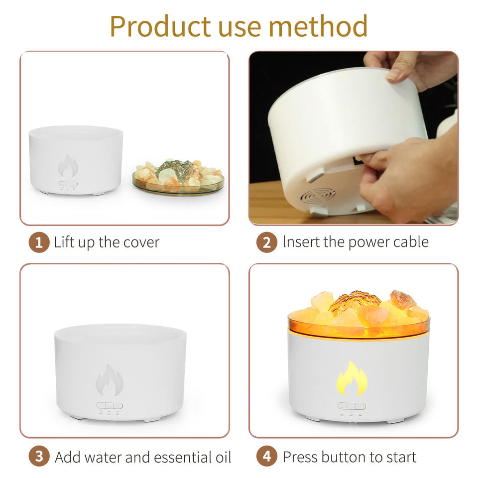 Flame Blue Light Ultrasonic Aroma Diffuser 0.5-1L Humidifier With Volcanic Rock For Home And Office Use
