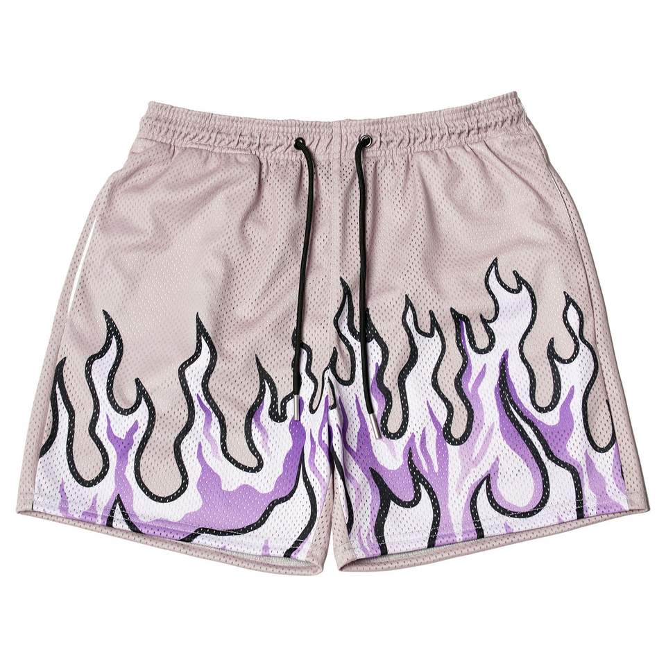 Flame Graphic Print Mesh Athletic Shorts for Running Basketball Casual Workout-Sport Style Gym Sweatpants