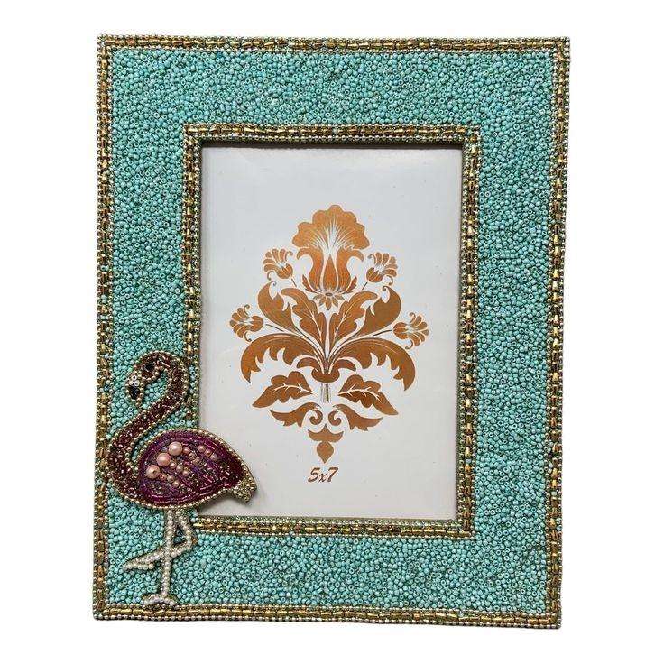 Flamingo Design Seed Bead Photo Frame 5x7 Glass Beaded Picture Frames Tabletop Home Decor Rectangle Vertical Display Beading Por