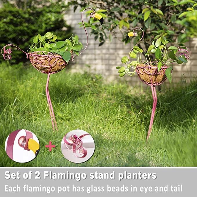 Flamingo Garden Bird Planters Metal Pink Flamingos Yard Ornaments with Basket Adorable Flamingo Gifts