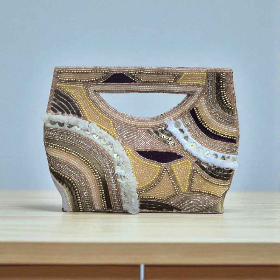 Flap Style Suede Bridal Handbag with Embroidery and Pearl for Women Wedding Party Use From India