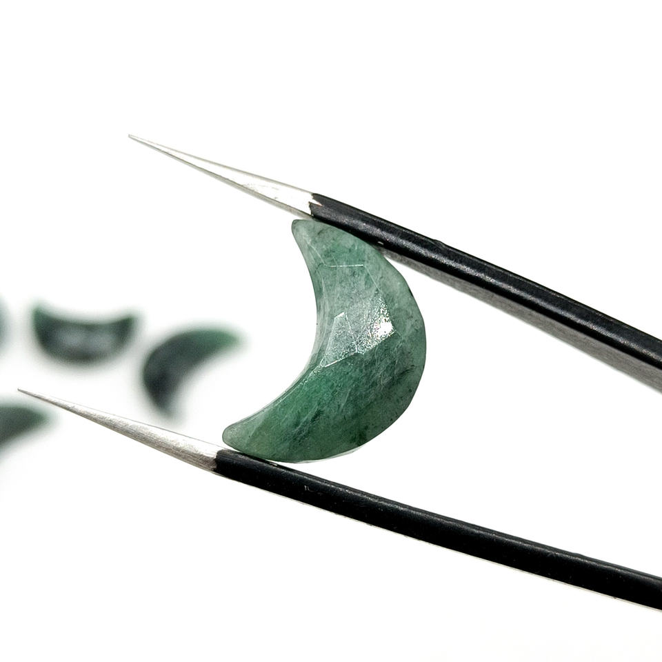 Flashy Emerald Faceted Crescent Moon Shape Gemstone for Jewelry Making, Loose Hand Carved Emerald Carving Briolette Beads, 18mm