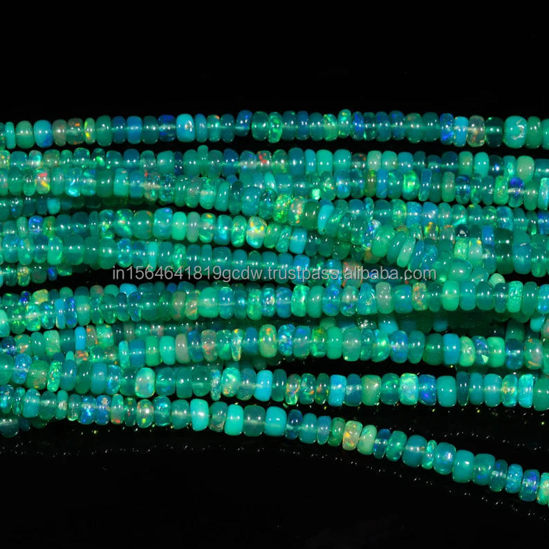 Gemstone:Green Ethiopian Opal Smooth Rondelle Beads