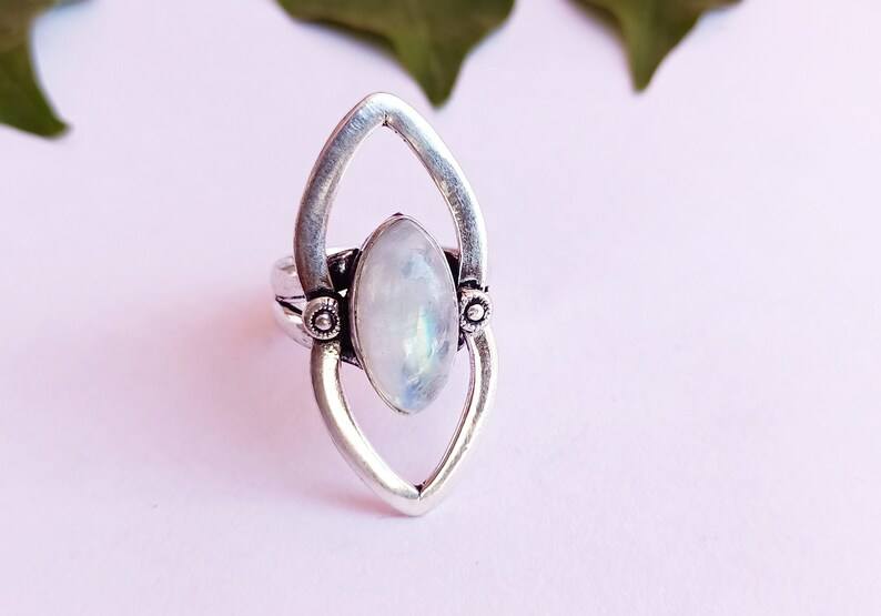 Flashy Moonstone Ring Handmade Silver Plated Boho Moonstone Ring Rainbow Moonstone Jewelry Gift For Women