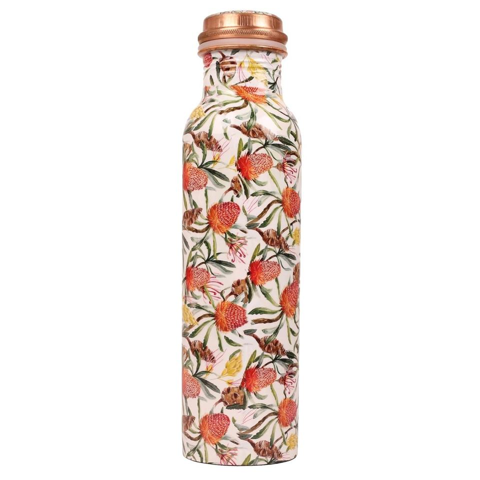Flasks Ayurveda Printed Leaf's Copper Water Bottle Perfect for Fitness Natural Pure Copper Leak Proof Bottle Gift Set of Metal