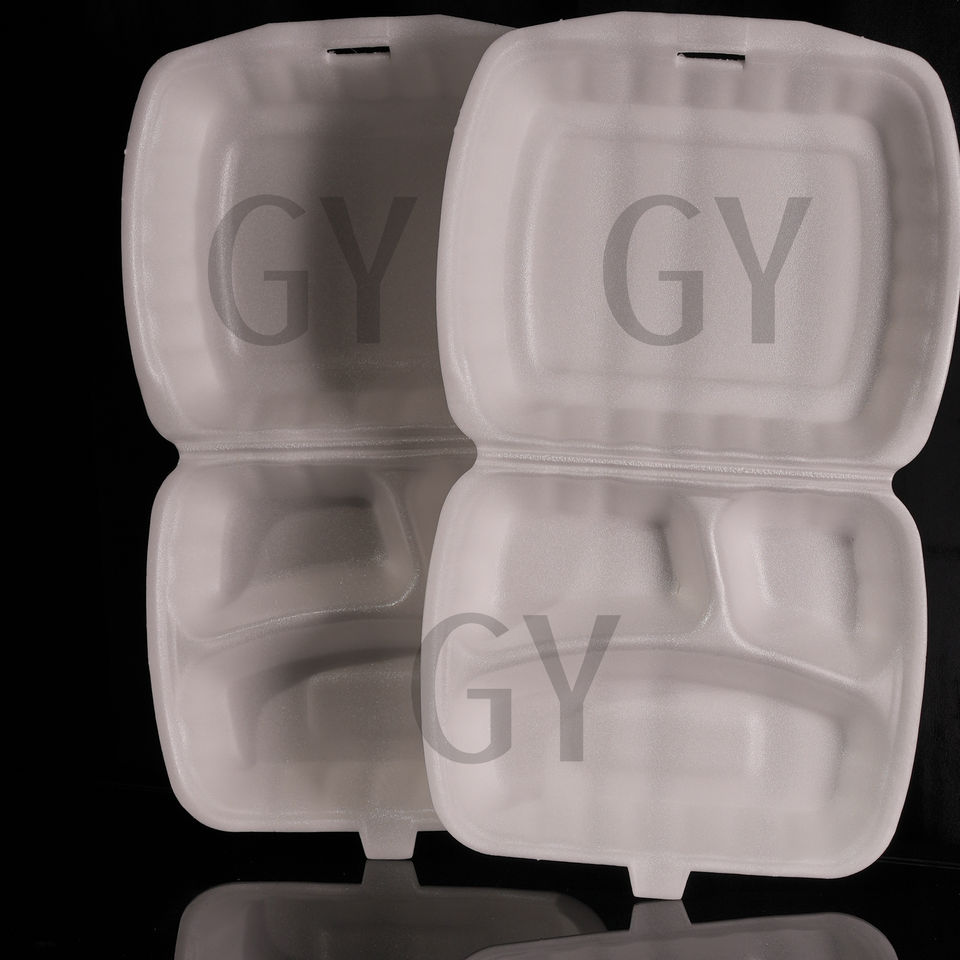 Flat Grid Box Three-Compartment Box Rectangular Box Breakfast Box Fast Food Box Disposable Foam Food Containers