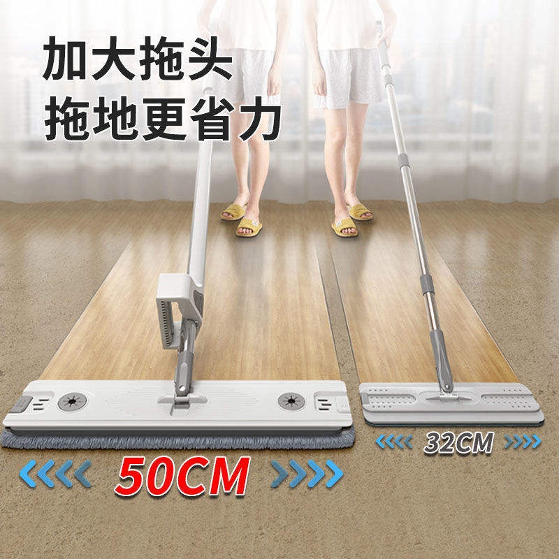 Flat Mop 50cm Microfiber Rotating Wet Dry Dual Use Hands Free Household Mop With Hook And Loop Fastener